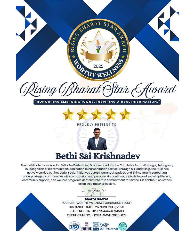 Adharana Charitable Trust provides food, clothes, and blankets to the homeless, ensuring warmth and nourishment. We support education for underprivileged children by providing books and essential materials. Our healthcare initiatives offer medical aid, medicines, and patient support. We promote environmental sustainability through tree plantation and rainwater harvesting. Additionally, we assist farmers with tools and training, enhancing food security and livelihoods.